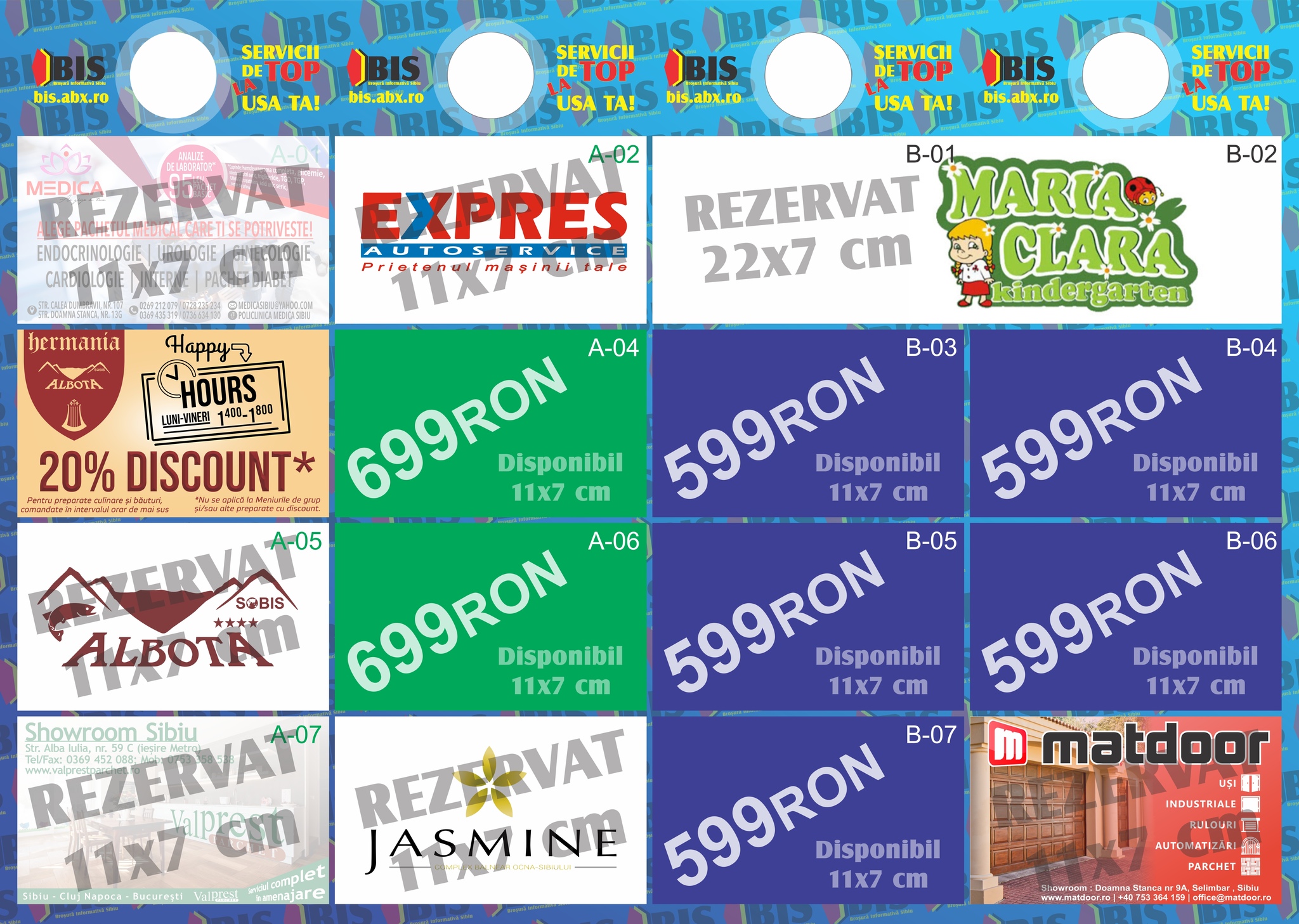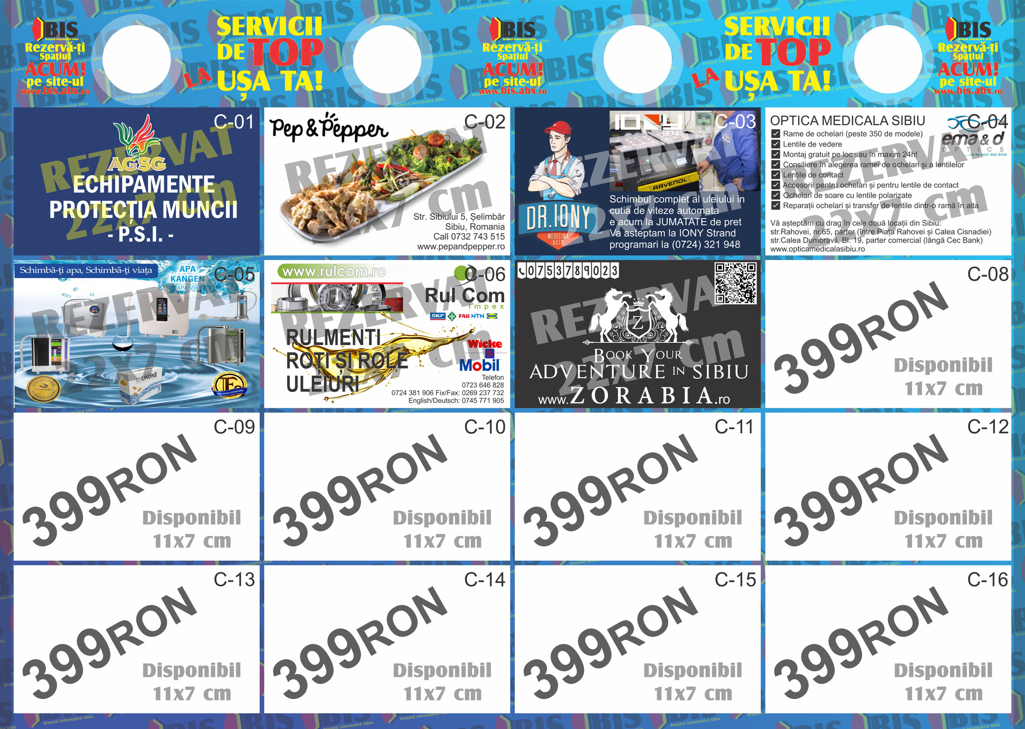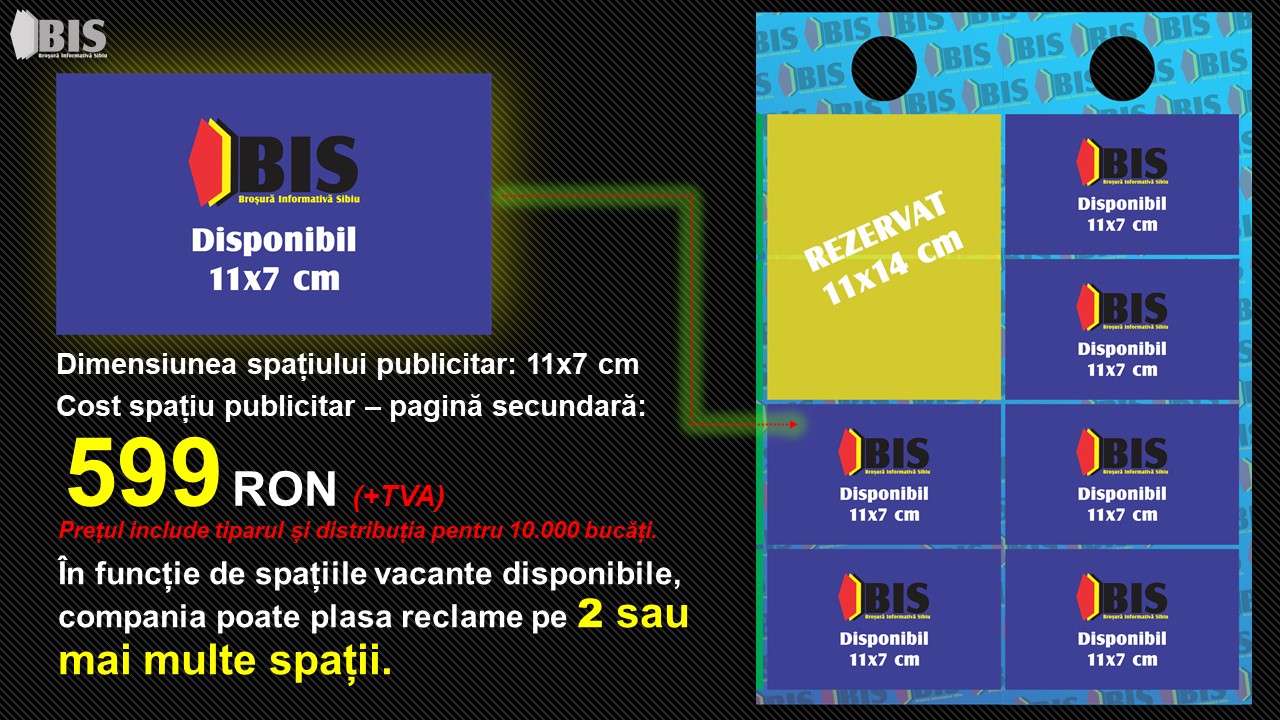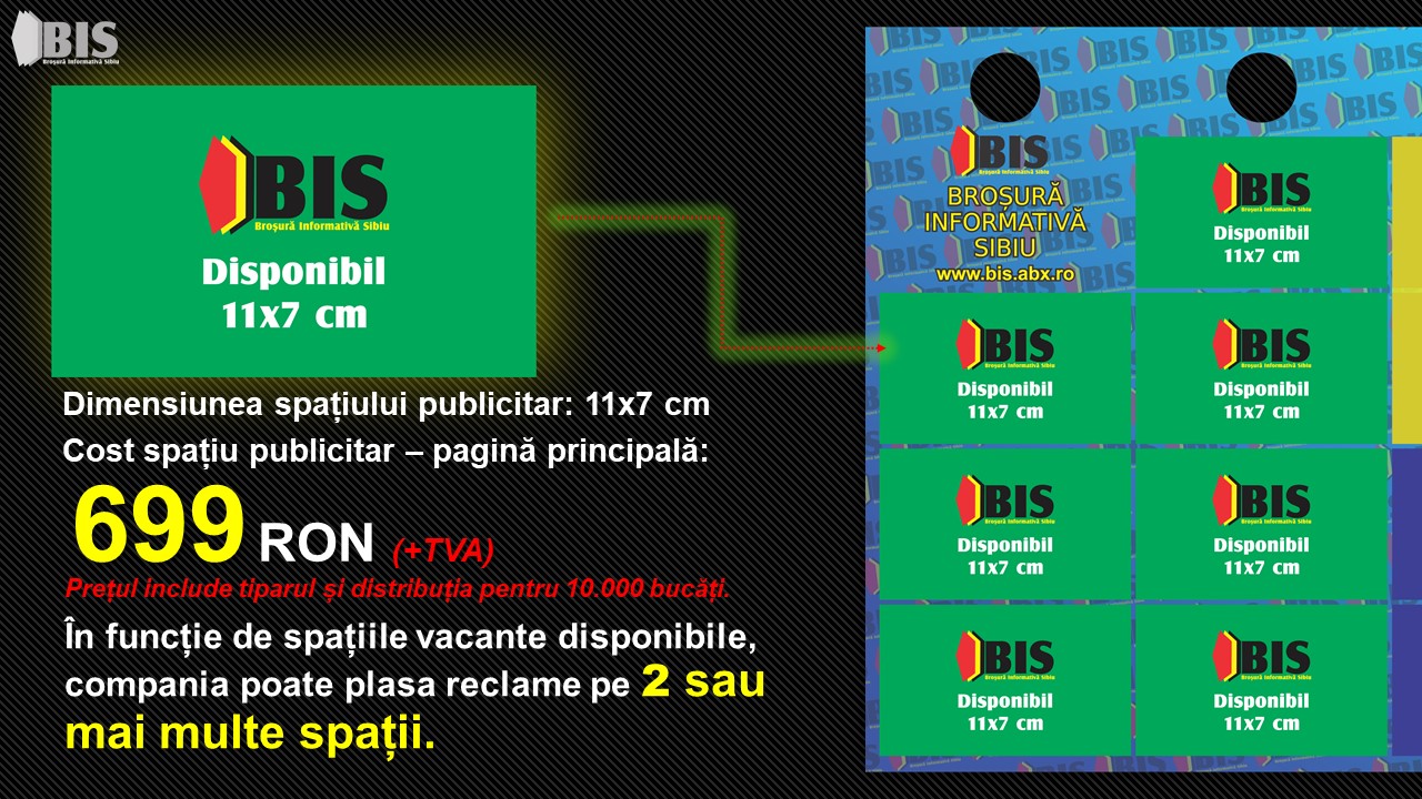 1 spațiu publicitar = 11x7 cm