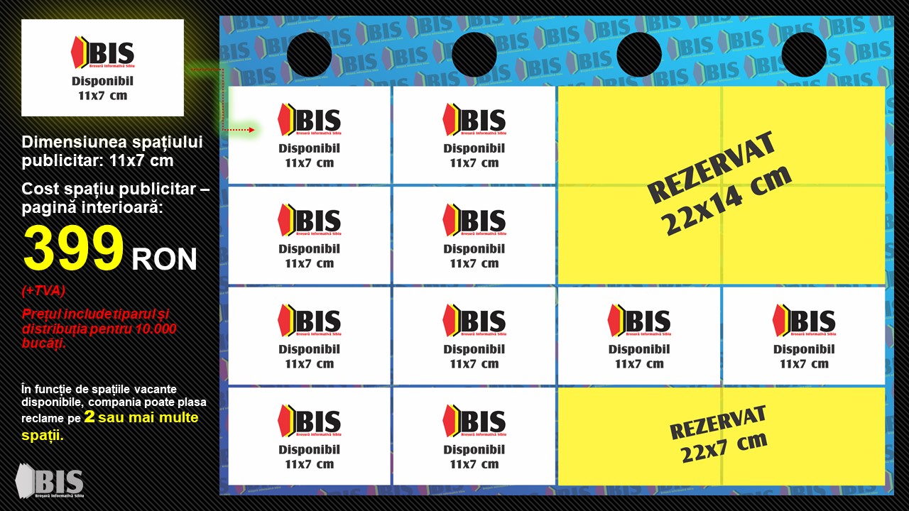 Dimensiunea spațiului publicitar: 11x7 cm